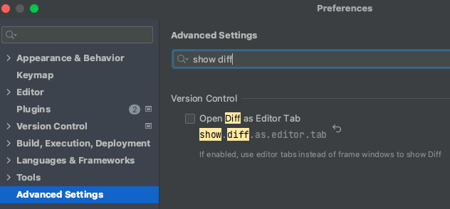 아래와 같이 인텔리제이 설정창(맥 기준 command + , )에 들어가서 Advanced Settings 에 가서 show diff 를 검색하여 해당 옵션을 키고 적용해서 다시 commit 창을 띄우면 원상복귀가 됩니다!