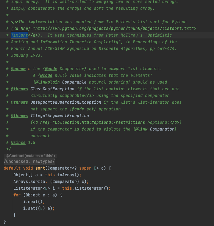 -> List에서 제공하는 default 메서드 sort를 보니 TimSort를 사용한다고 적혀있습니다.