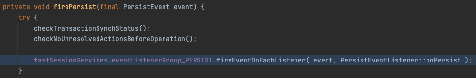 persist가 된다면 내부 이벤트를 발행하여 JPA의 구현체 Hibernate 가 처리하게 됩니다.