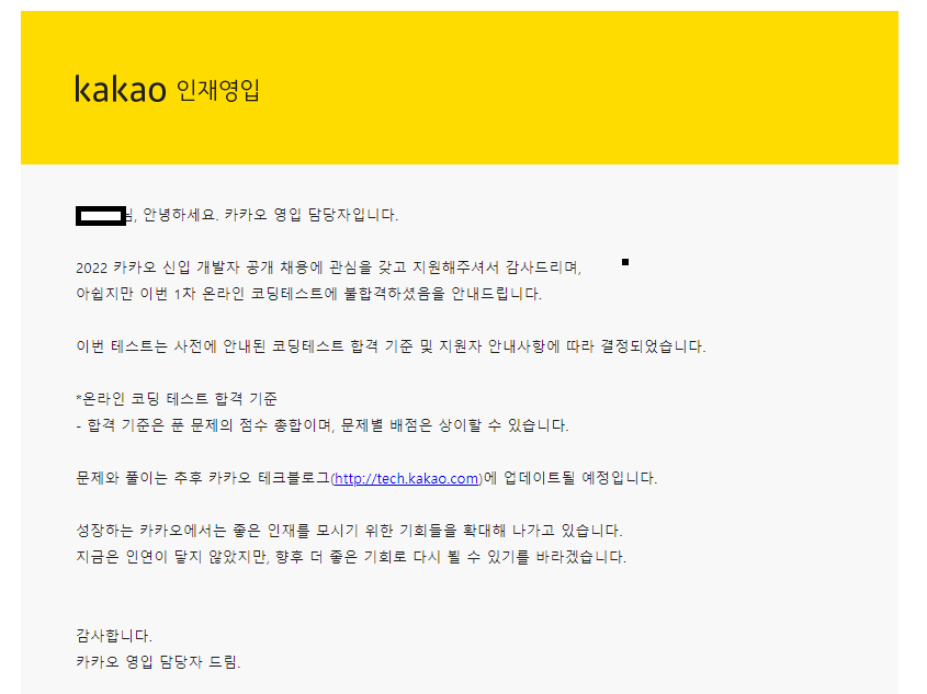그렇게 문제는 점점 뒷전이 되어가던 찰나 카카오 공채 소식을 듣고 나의 위치를 알고 싶어서 신청을 하게 되었다.