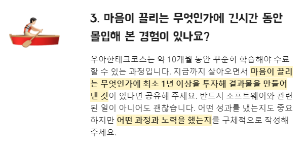 가장 재미있고 행복할 수 있을 것 같다라고 일단 결론을 내렸다. 대학교에서도 회사 다녔을때도 안풀리던 문제가 해결됐을때 짜릿함과 재미를 느꼈고, 어렸을때 부터 컴퓨터는 내 친구였고 앞으로도 그럴 것 같다! 우테코를 들어갈 계획은 아니지만 최소 저런 질문에 답할 수 있는 '꾸준한' 사람이 되어야겠다고 다짐했다.
