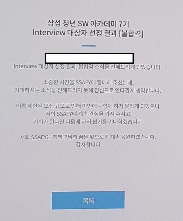 하지만 싸피7기도 이렇게 면접도 못가고 불합격으로 마무리..