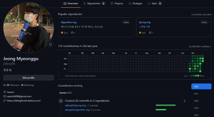 스프링을 배우기 시작했다. 인프런은 6주년이라고 세일 때 큰맘 먹고 다 사버렸다!! 김영한 강사님의 강의를 듣는데 너무 재미있게 수업을 배우고 있다. 깃허브도 1일 1 커밋 운동을 참여하기 시작하고 백준또한 꾸준히 풀고 있는 중이다.