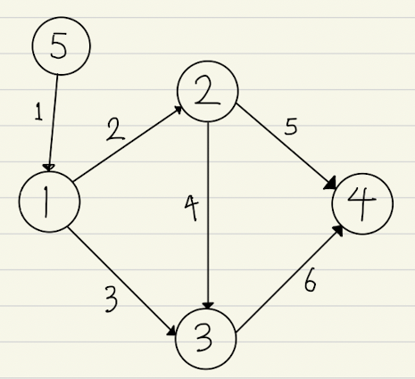 문제에서 주어진 테스트 케이스의 그래프의 형태입니다. 단계별로 풀어내 보도록 하겠습니다.