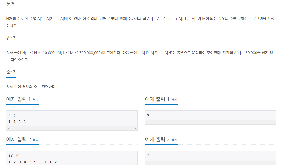 이 문제를 풀기 위해서는 '투 포인터' 라는 알고리즘을 알고 있어야 한다.