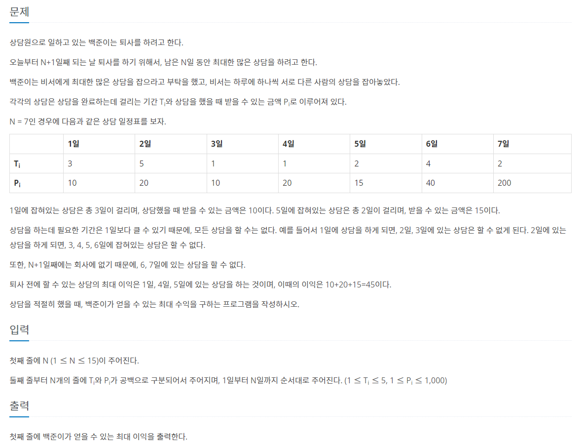 //해당 날이 퇴사하는 날 일때 최대 수익을 계산한다.